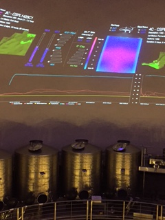 Palmaz makes it 52 wineries in 2014! On a beautiful early December day I experienced the most expensive of all of the tastings I have done this year at the beautiful Palmaz Vineyards founded by the inventor of the cardiac stent. My friend Gayle was visiting from New York and arranged for a private tour and tasting at this high tech winery for a mere $60 per person. The winery is built into the mountain which allows for the equivalent of an 18 story building that houses the approach of gravity flow wine making. No wine is pumped from place to place — it all flows down from story to story and is monitored by Star Trek looking dashboards projected on the walls.